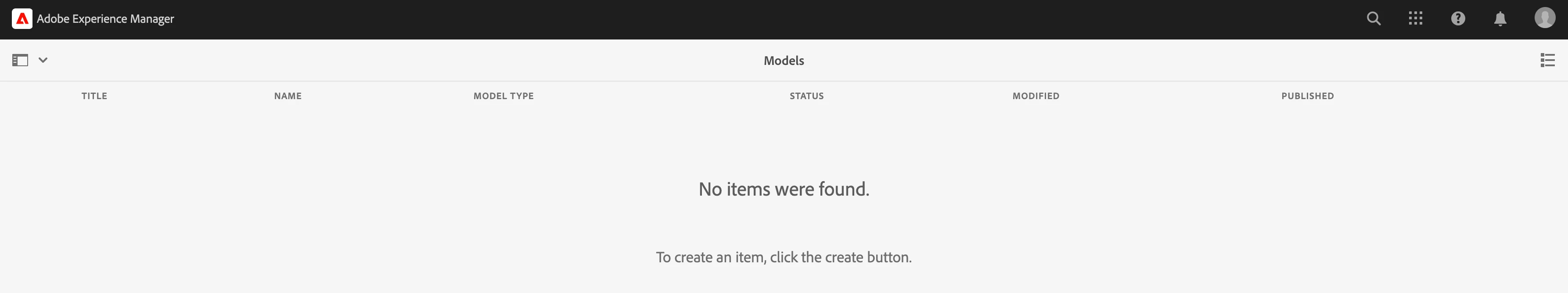 I've setup AEMasCloud local SDK in my local and when I try to create new Content Fragment model, I don't see Create button option. I've logged in as admin. Please advise if this is something to do with permissions or I'm missing something here.