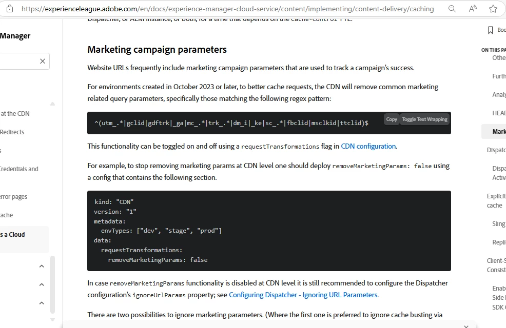 AEM cloud CDN removeMarketingParams cdn yaml config not working - config pipeline failing during deployment