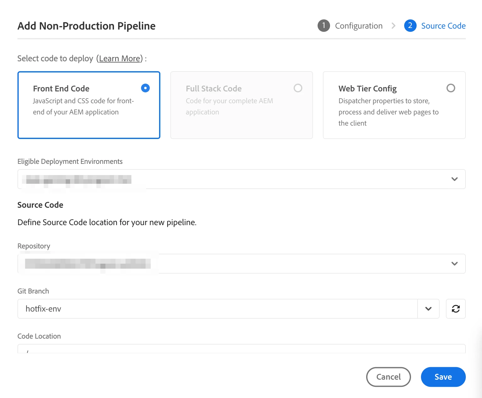 we use "full stack" for all our non prod pipelines. It builds, tests and deploys our front end code (react/js/css etc) in ui.xxx dir, our backend java code in core dir, and the dispatcher configs in dispatcher dir.