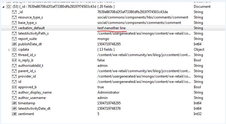 I am using MSRP for UGC storage and the comment entry is stored with a '\n'. (See image)