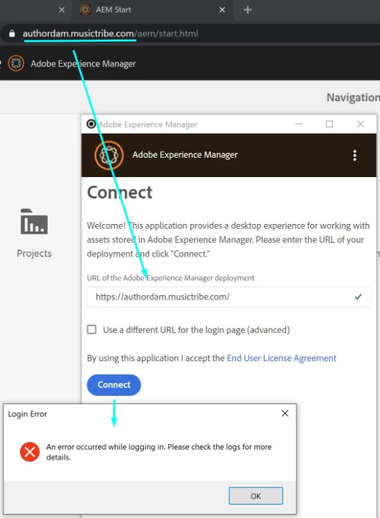 AEM Desktop App wont Connect