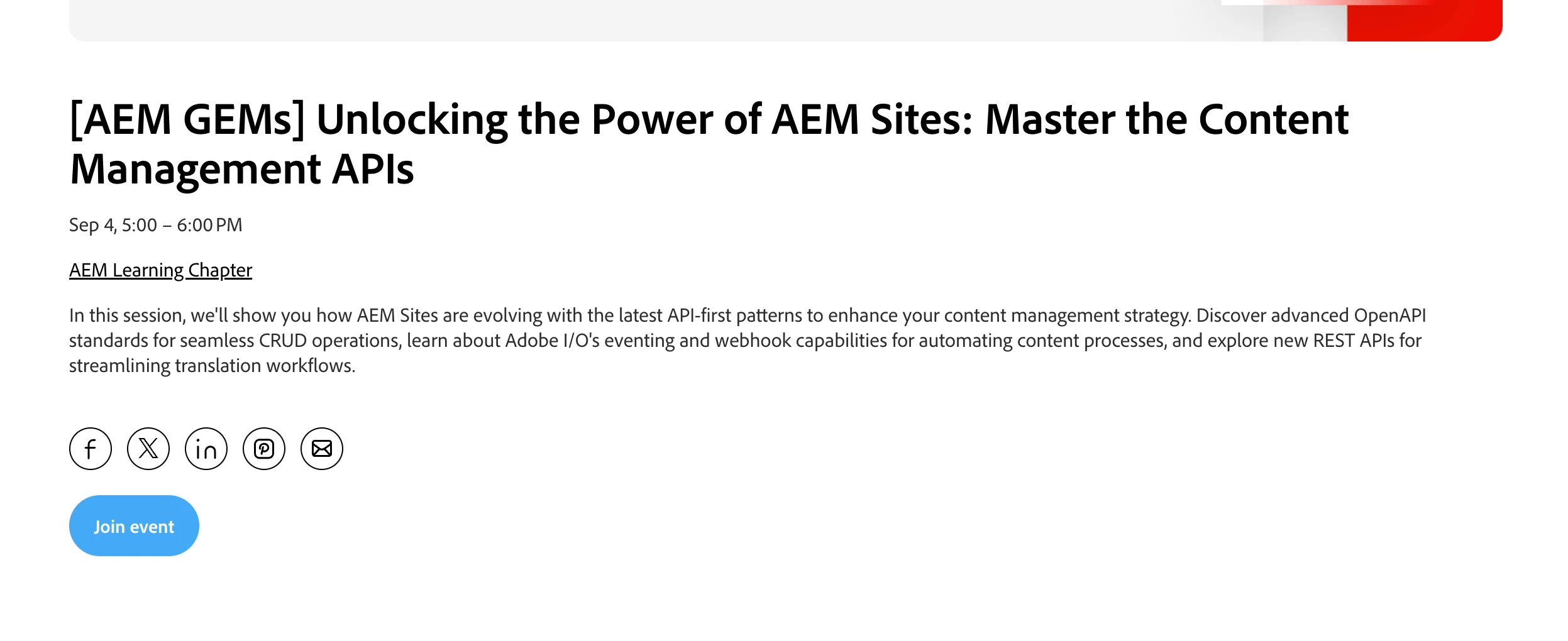 In this session, we'll show you how AEM Sites are evolving with the latest API-first patterns to enhance your content management strategy. Discover advanced OpenAPI standards for seamless CRUD operations, learn about Adobe I/O's eventing and webhook capabilities for automating content processes, and explore new REST APIs for streamlining translation workflows. Expect great content, practical demonstrations, and actionable takeaways that you can apply immediately.