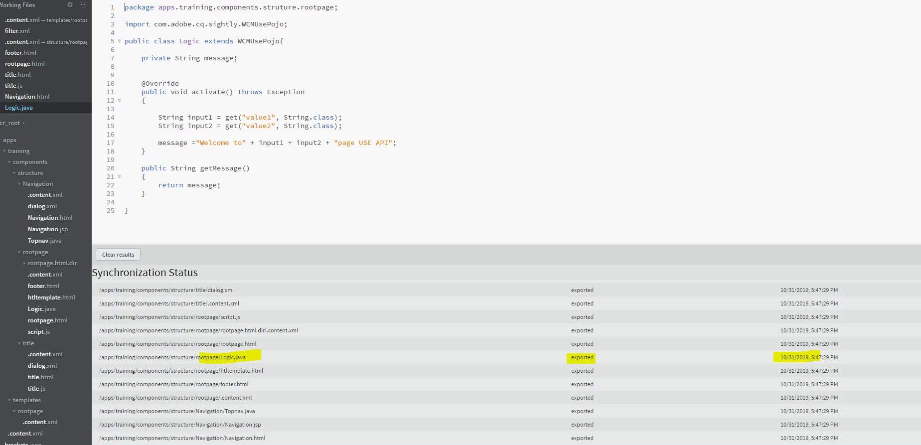 i have created a training project package and imported in Brackets IDE , synchronization is sucessfull to AEM and i am able to export back to AEM.