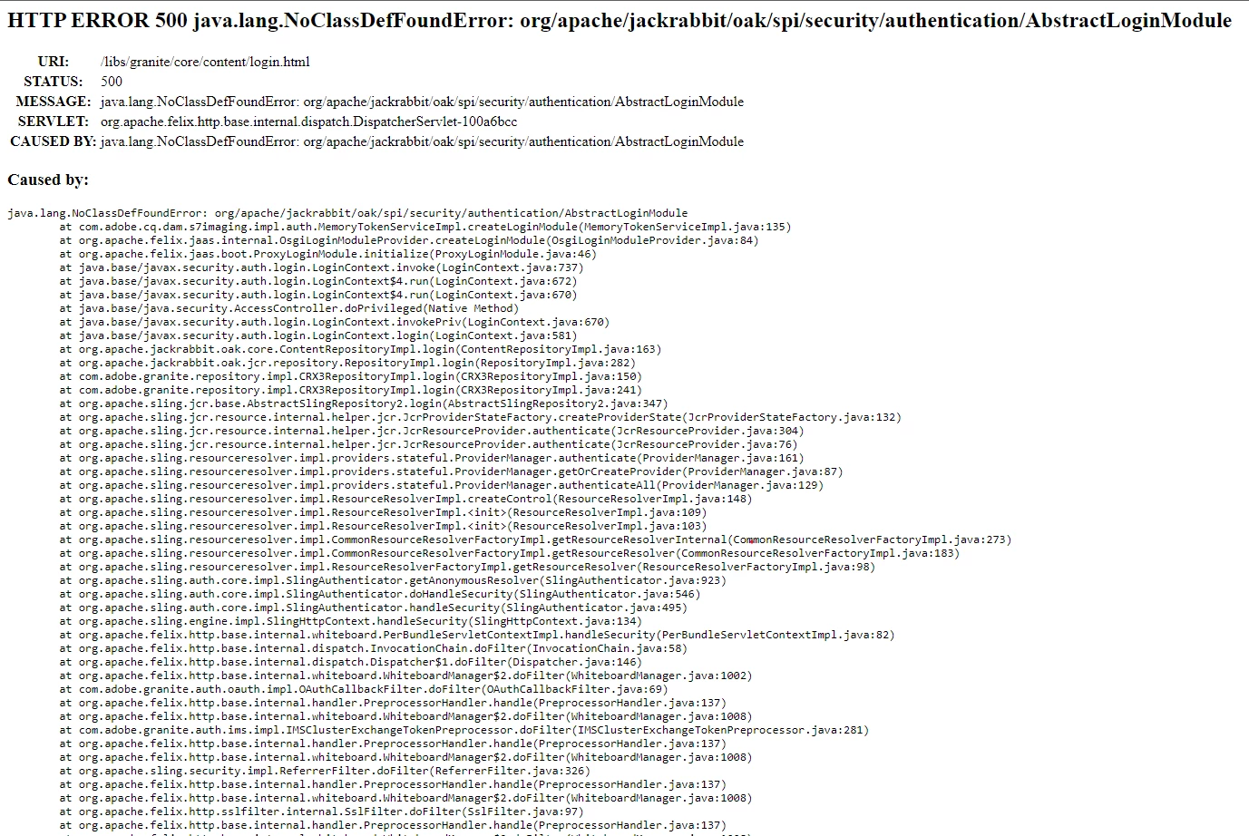 AEM login is not working | Error org/apache/jackrabbit/oak/spi/security/authentication/AbstractLoginModule