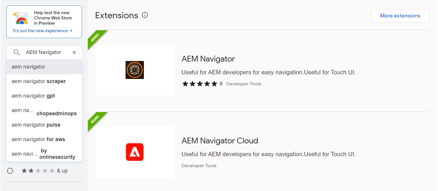 Download AEM Navigator for Cloud from Chrome store