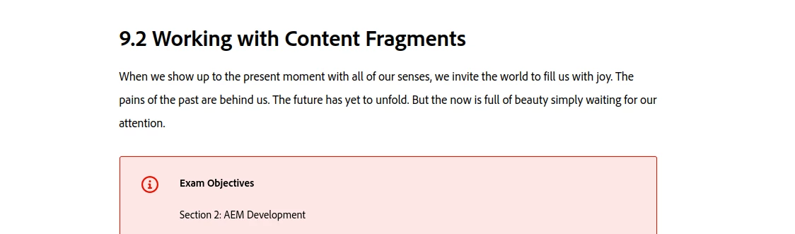 AEM Sites Developer Professional free online training with exam preparation. Have a question about the AEM Foundations course, AEM Sites Developer Professional course, or the Certified Professional exam prep guide listed on the certification information page?