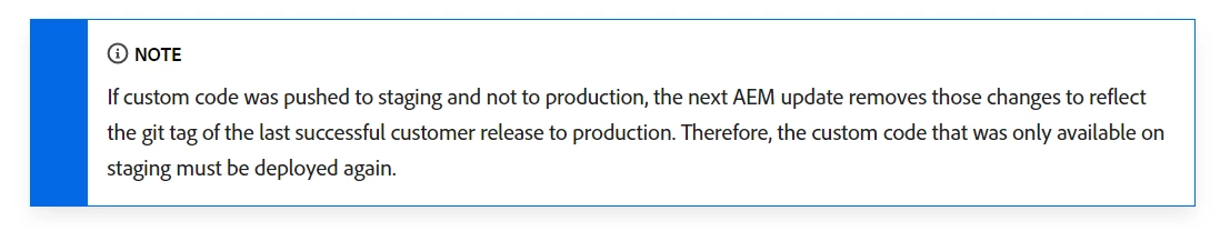 AEM Version Updates - Automatic Updates - Handle custom code pushed to Staging but not Production