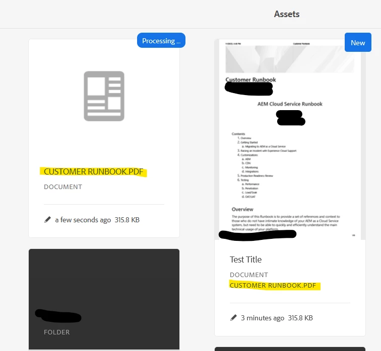 Notice how the filename has been modified to uppercase "CUSTOMER RUNBOOK.PDF"