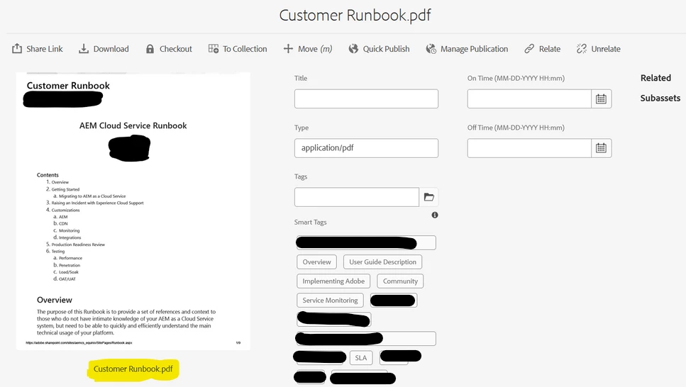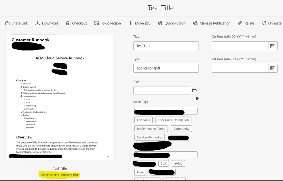 The filename is displayed as "Customer Runbook.pdf" (highlighted in yellow)