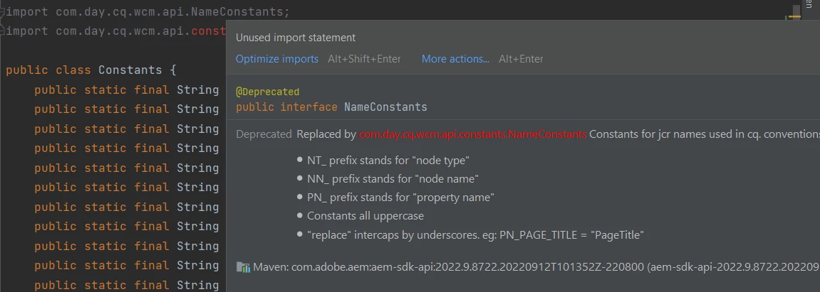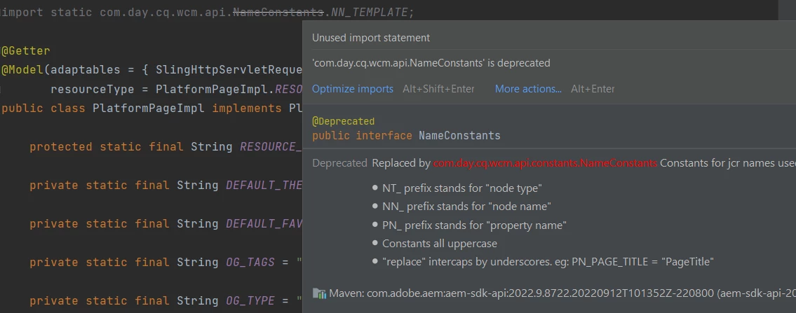 AEMaaCS Code Scanning Issues - Open Issues - Use Interface com.day.cq.wcm.api.NameConstant - Use predefined constant instead of hardcoded value.