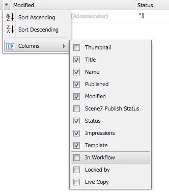 Before the overlay, the OOTB column list is this one: