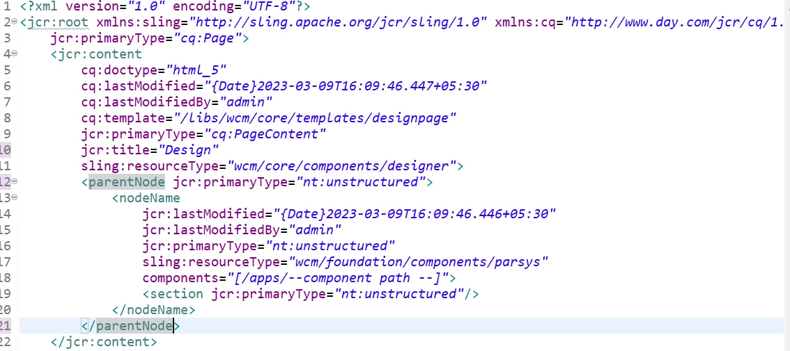 So in the above allowed components are added inside the "jcr:content" . These are the dummy data you can replace it with your actual data.