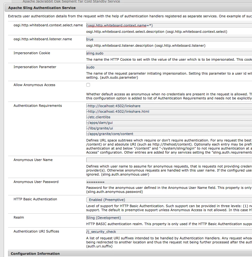 I have "Allow Anonymous Access" checked at /system/console/configMgr/org.apache.sling.engine.impl.auth.SlingAuthenticator