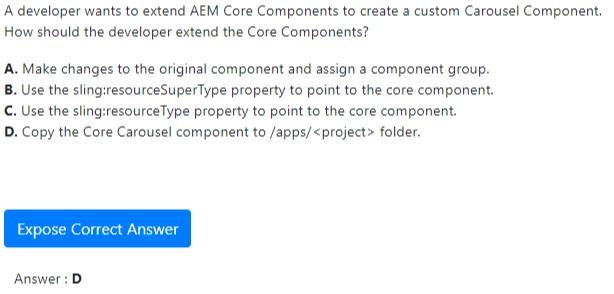 2)Customizing the Markup-> we need to copy the HTL files that need to be modified from the Core Component into the proxy component:Answer D