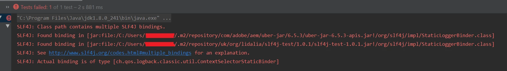 It is failing because of multiple SLF4J binding.