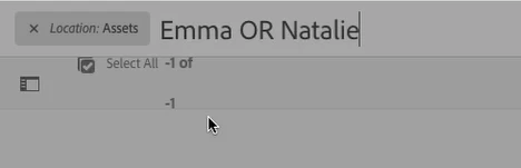 I need to search for assets that meet various criteria, such as having either of two tags, using Boolean search options. I follow the below steps and get a -1 error message.