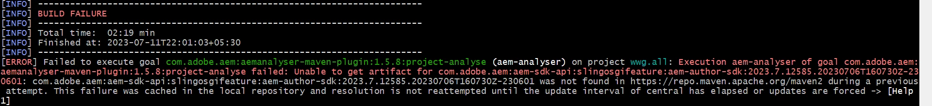 Error: Failed to execute goal com.adobe.aem:aemanalyser-maven-plugin:1.5.8:project-analyse (aem-analyser) on project wwg.all
