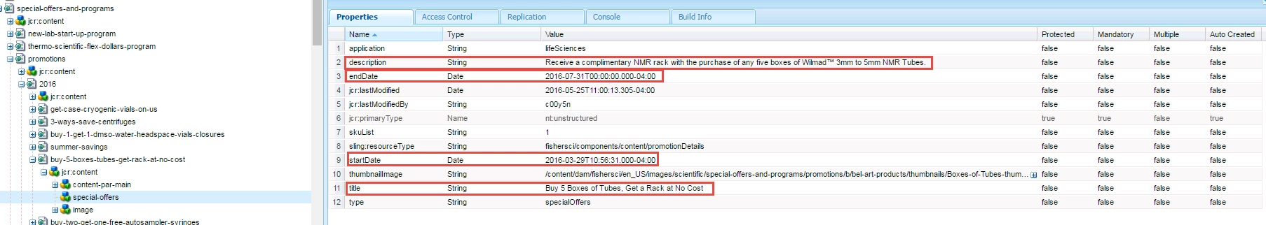 Example 2:  Looking to pull custom metadata component content rooted within jcr:content node of Promotion Detail pages in a Promotions node.