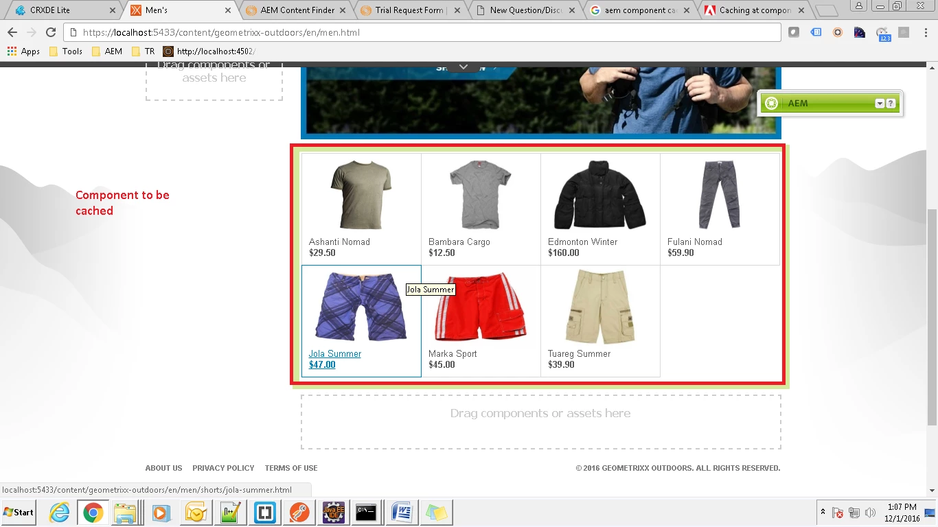 For example refer attached image captured from https://localhost:5433/content/geometrixx-outdoors/en/men.html