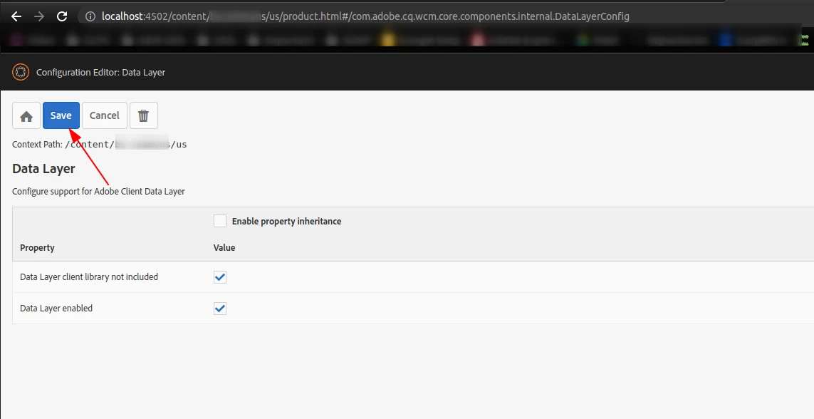 org.apache.sling.caconfig.spi.ConfigurationPersistenceException: Unable to persist configuration: Configuration resolving strategy returned no path.