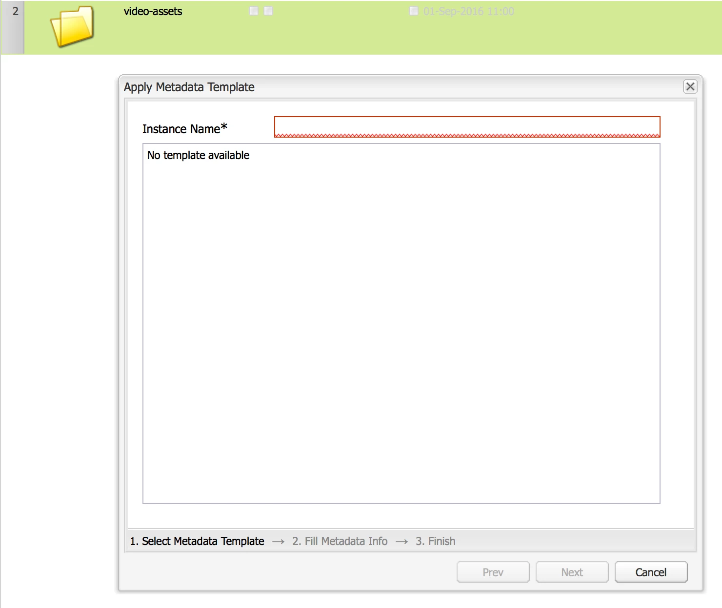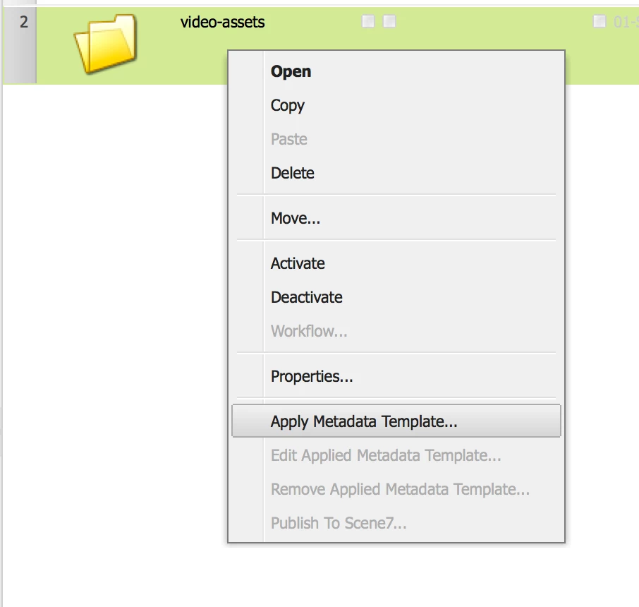 Cannot apply schema template to asset folder