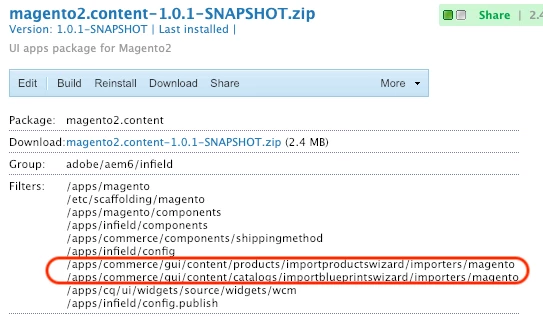 [ERROR] Request failed: org.apache.jackrabbit.vault.packaging.PackageException: javax.jcr.nodetype.ConstraintViolationException: OakConstraint0025: /apps/commerce/gui/content/catalogs/importblueprintswizard/importers[[nt:folder]]: Unexpected child node magento found in a new node (500)