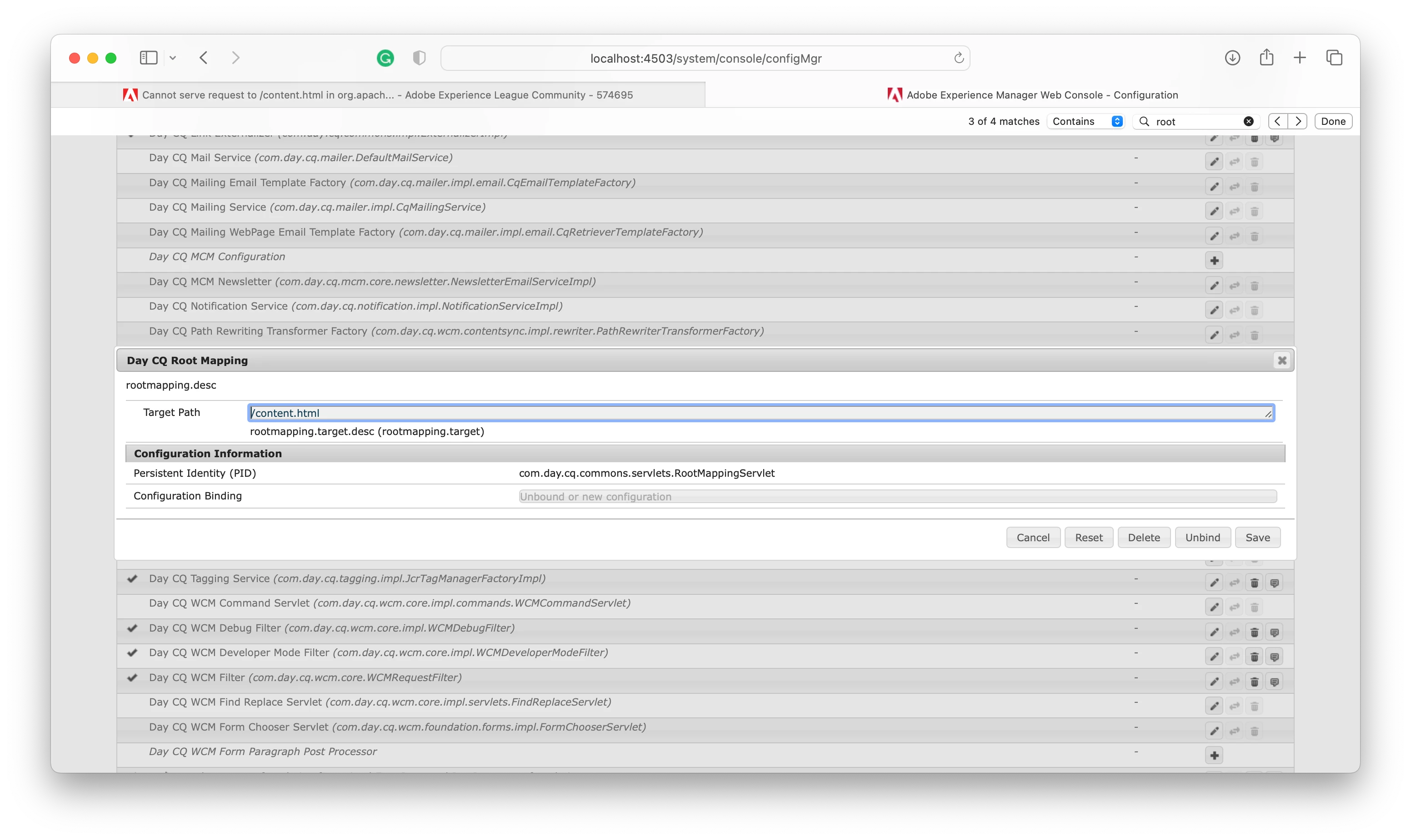 Cannot serve request to /content.html in org.apache.sling.servlets.get.DefaultGetServlet for publish 4503