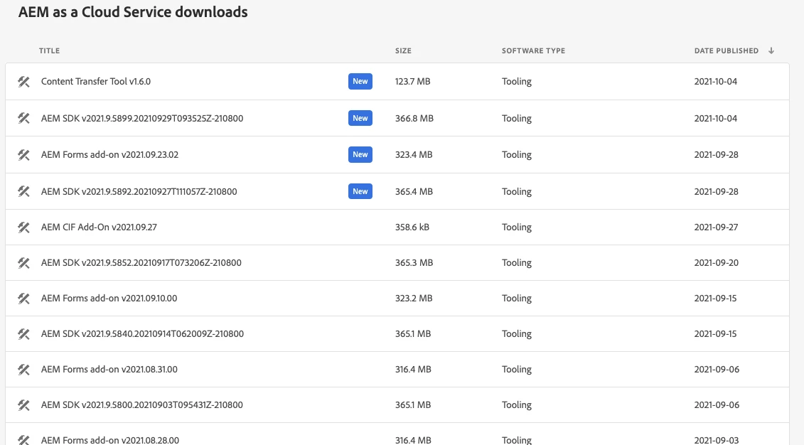 If I click on any package in https://experience.adobe.com/#/downloads/content/software-distribution/en/aemcloud.html