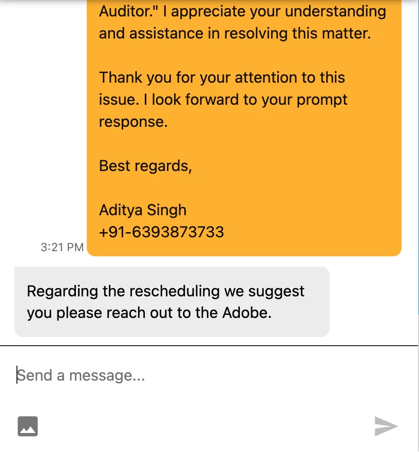 The email provided instructions to reconnect; however, when I attempted to access the provided link, I was prompted for a session ID, which I did not receive due to the disconnection. & now exam status is showing “Approved by Auditor”. They asked to reschedule the exam without taking exam. Please need help in this situation. I also mailed to certif@adobe.com & waiting for their response. Please guide to get refund or atleast reschedule exam without fee for next.