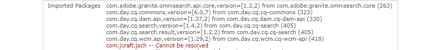 [ERROR] com.project:project.core:1.0.0-SNAPSHOT: Bundleproject.core:1.0.0-SNAPSHOT is importing package(s) com.jcraft.jsch in start level 20 but no bundle is exporting these for that start level.