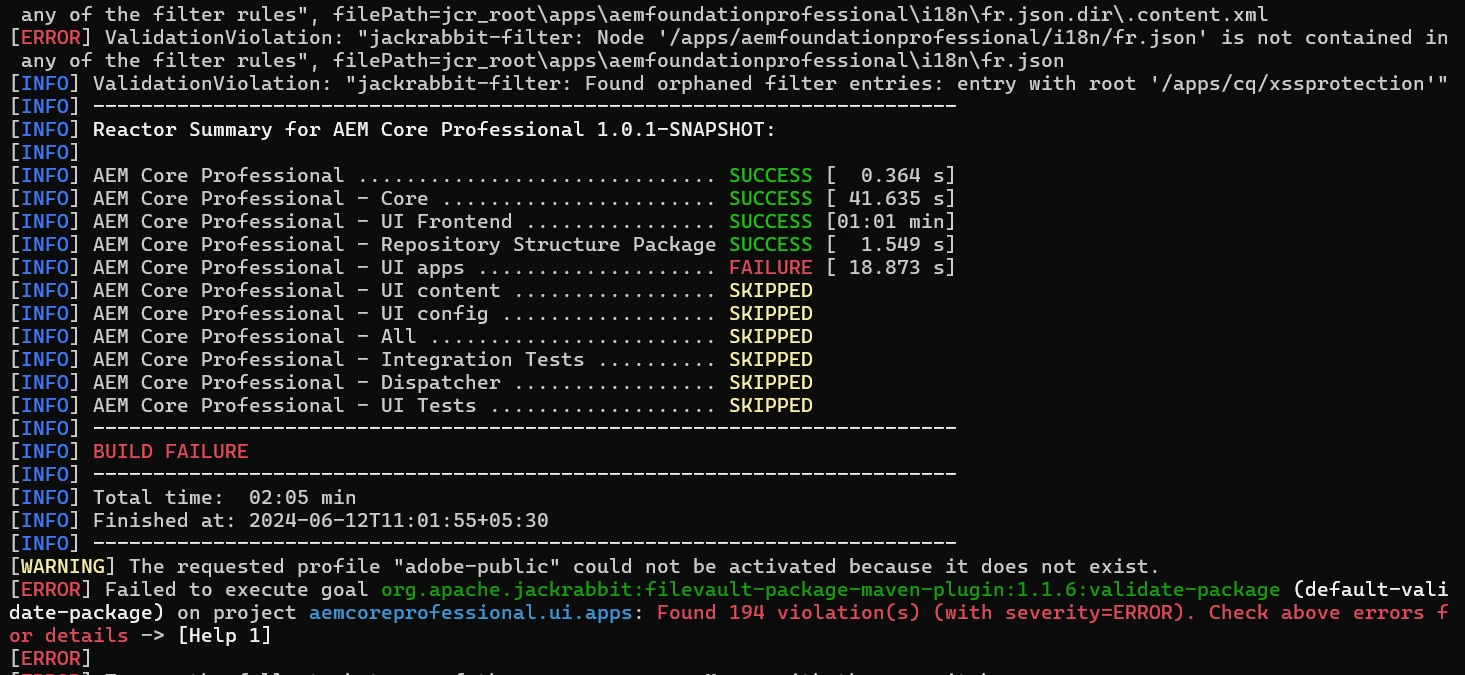 1. Try using the following build command mvn clean install -PautoInstallPackage -Padobe-public