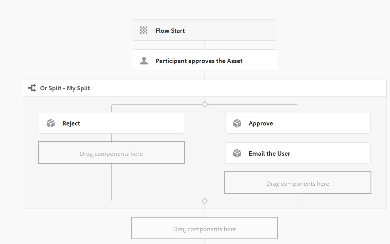 The process permissions step will provide me a result from an external end point. If the result is success, then I should carry out the steps defined in the "success" flow otherwise "Failure" flow should be invoked.