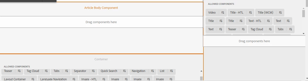 When I put "articleBody" container component on template structure. I do not see 'allowed components' similar to other responsivegrid containers ( in above picture)