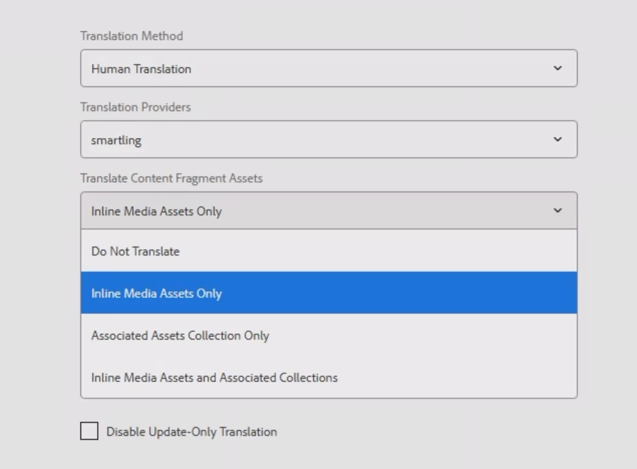 As per the translation cloud configuration I am not able to find an option to stop Inline Media Assets to be translated.