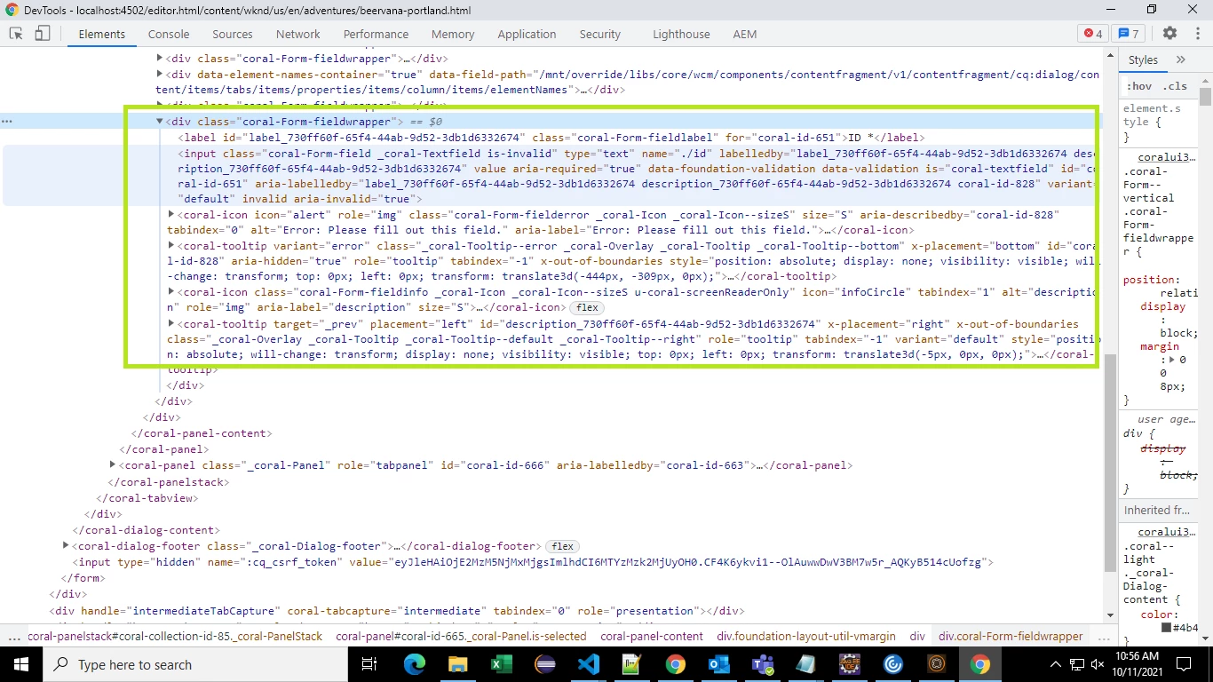 Content Fragment - Validation Error Message - Not showing up