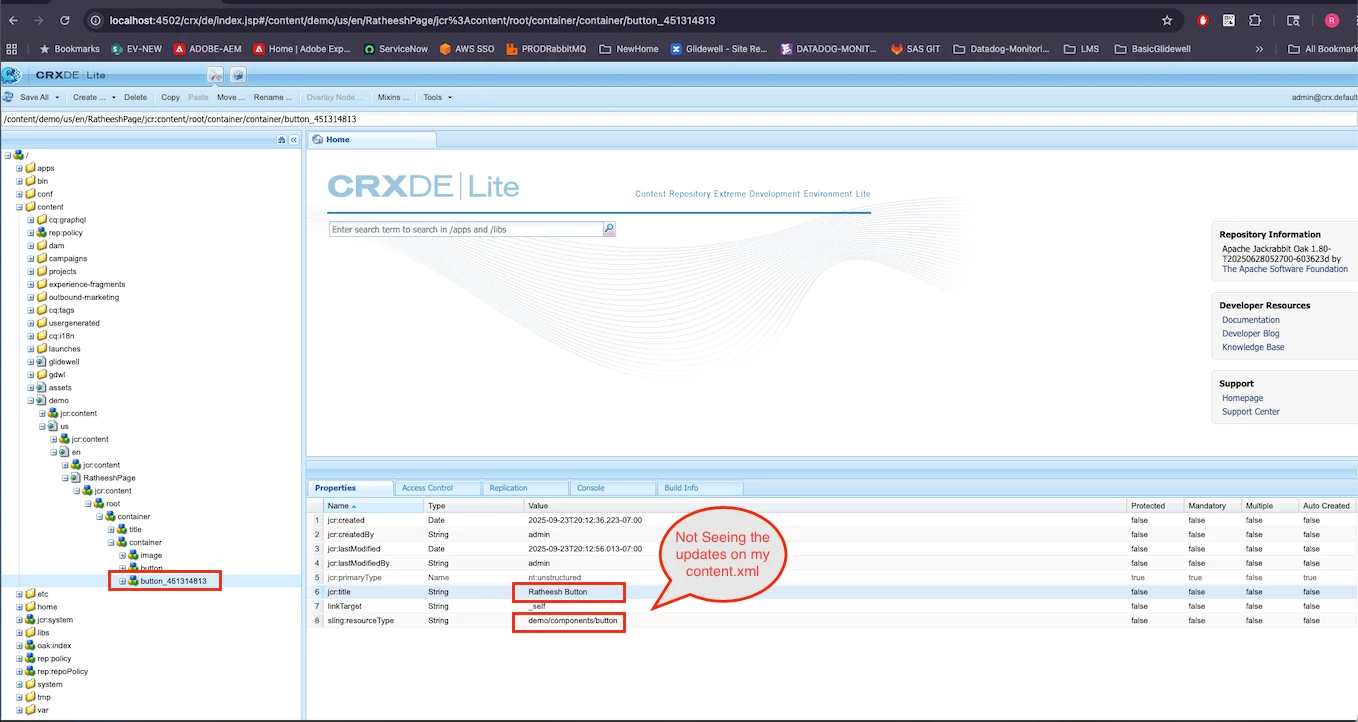 4: Verify the changes are reflected in crxde