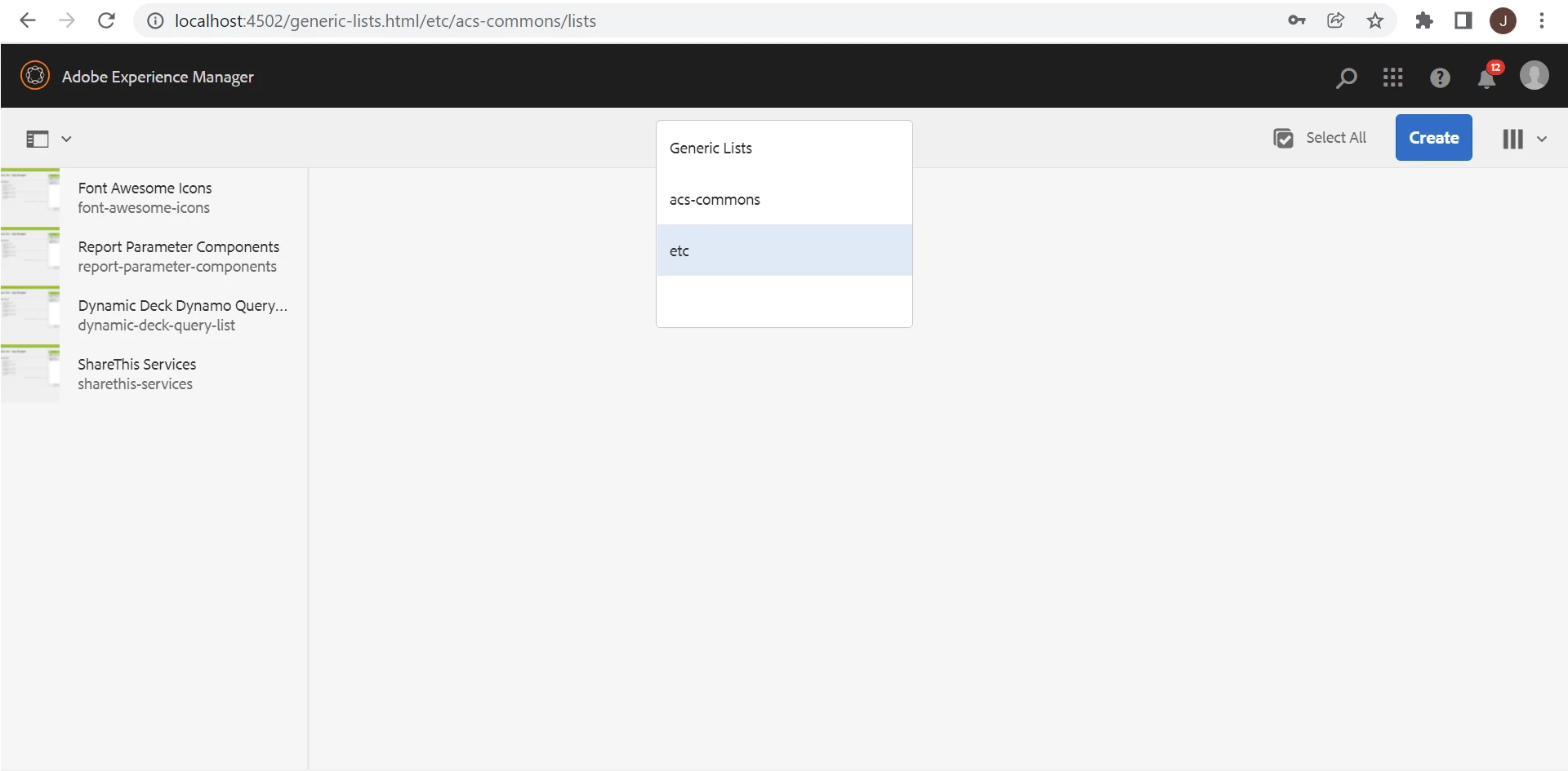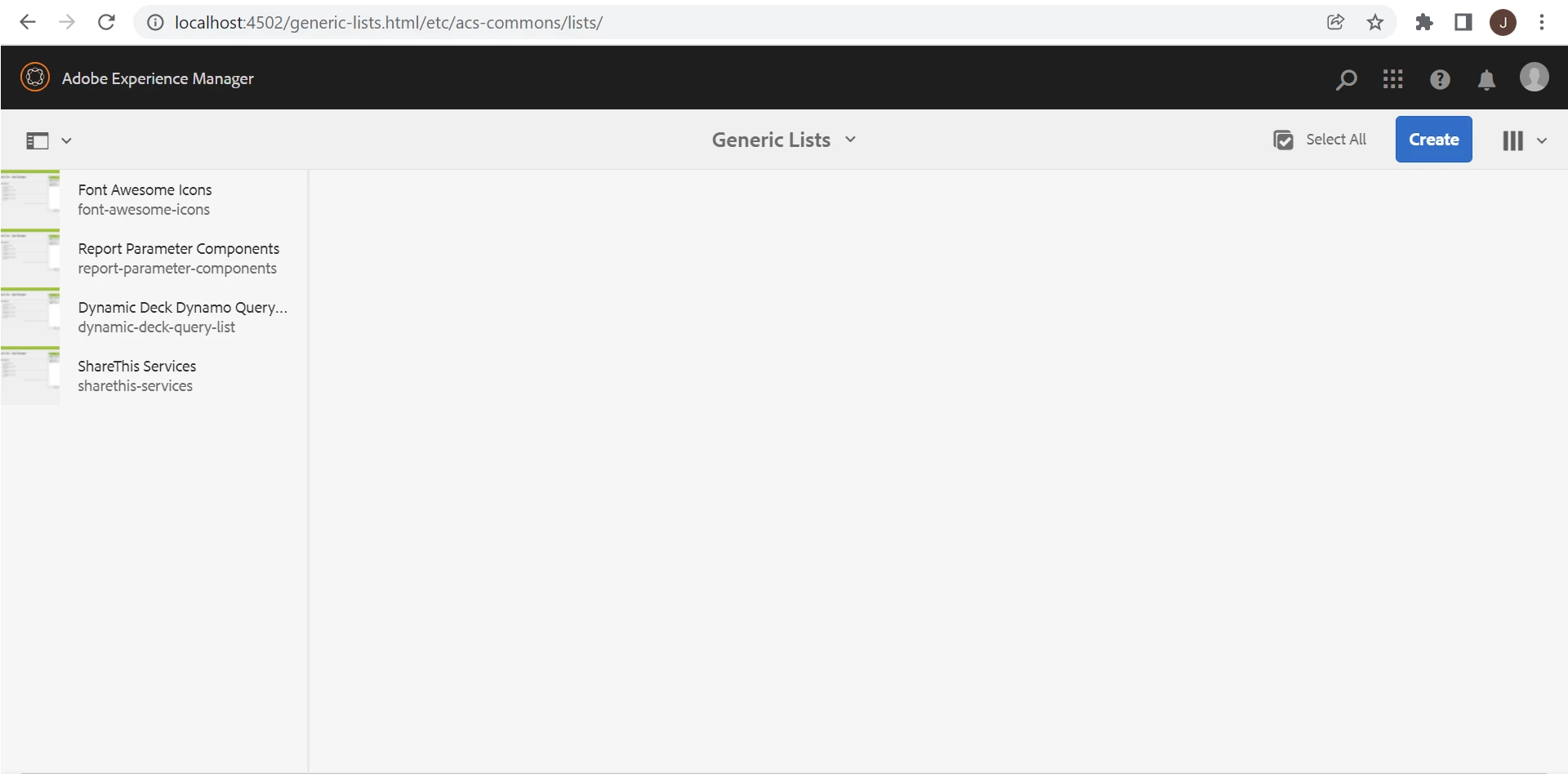 To reproduce, first navigate to Tools -> ACS Commons -> Generic Lists