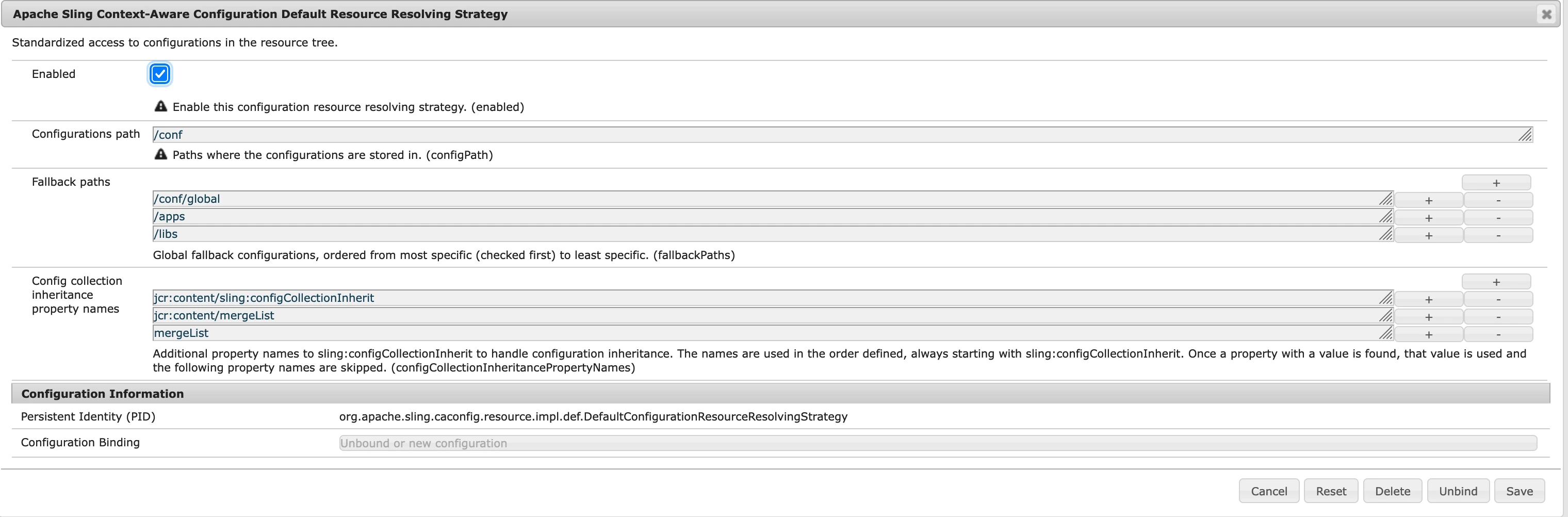 Configuration resource resolving: