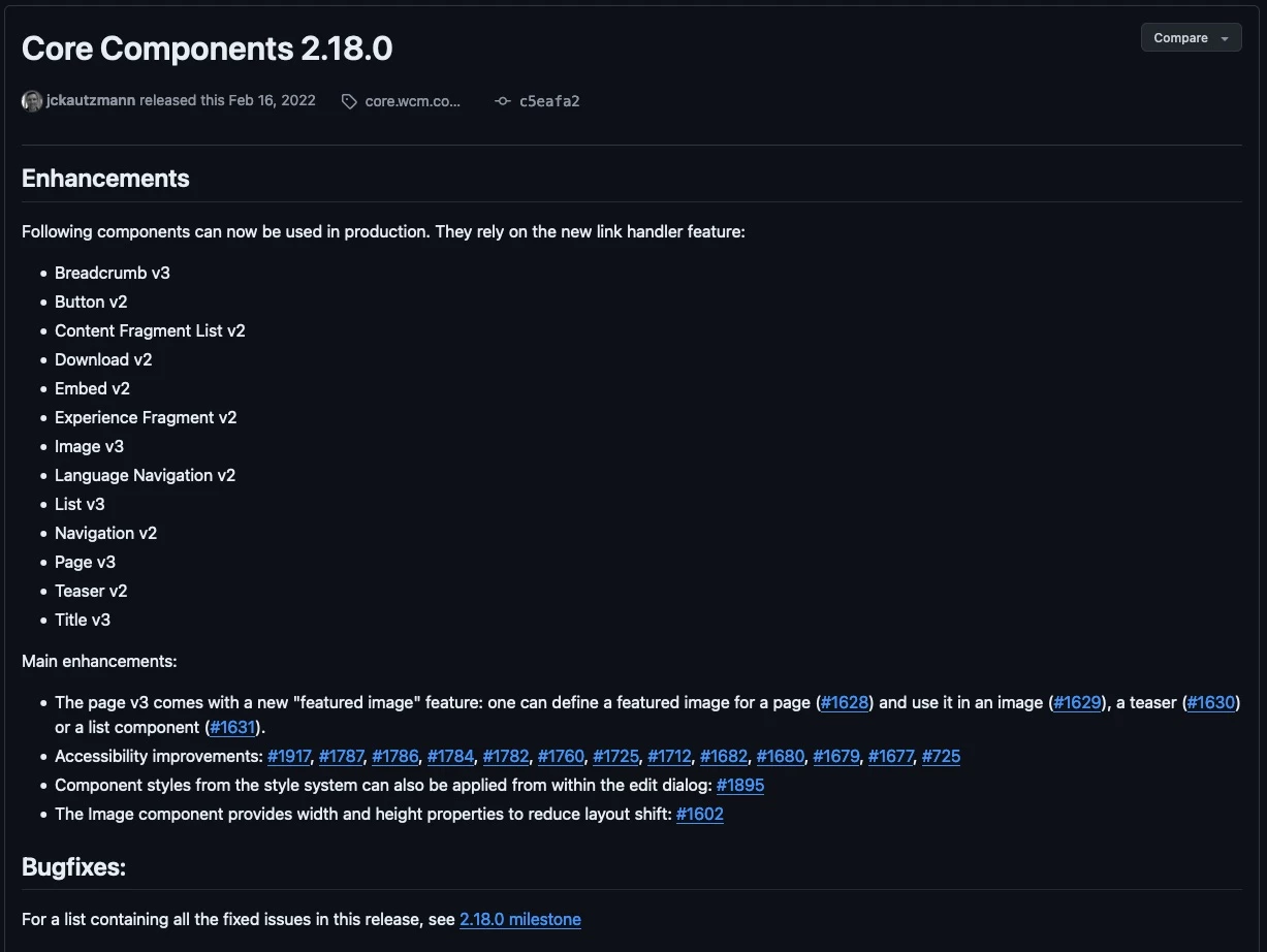 I'm trying to find if there's a table/summary of differences with the different versions of core components (page, breadcrumbs and etc). BUT I am not having any luck finding such information.
