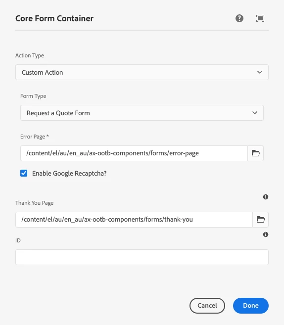 Before I have a post.POST.jsp on my custom action to call a service to process the input data on my form but I have a new required to use a servlet instead. I have seen this thread on how to call a servlet. I already have a core form that extends to
