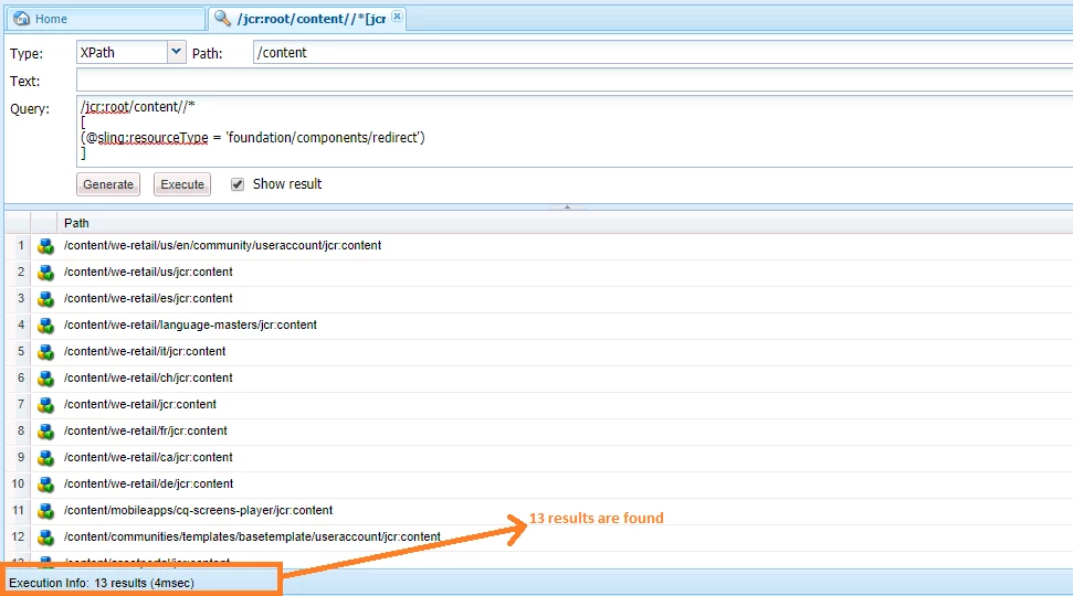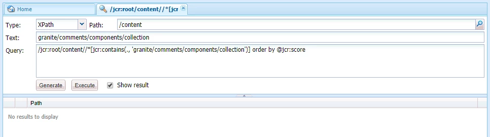 Crxde lite query/home search not showing results under content in AEM 6.3