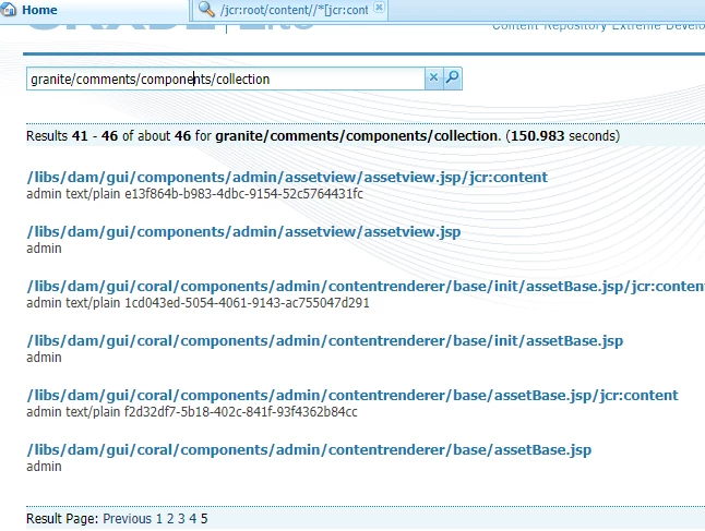 I was trying to search all instances of "granite/comments/components/collection" this included in our content but I don't see any results when I used XPath query through Crx/de. It shows the result of instances that are under libs. I even tried using crxde home search.