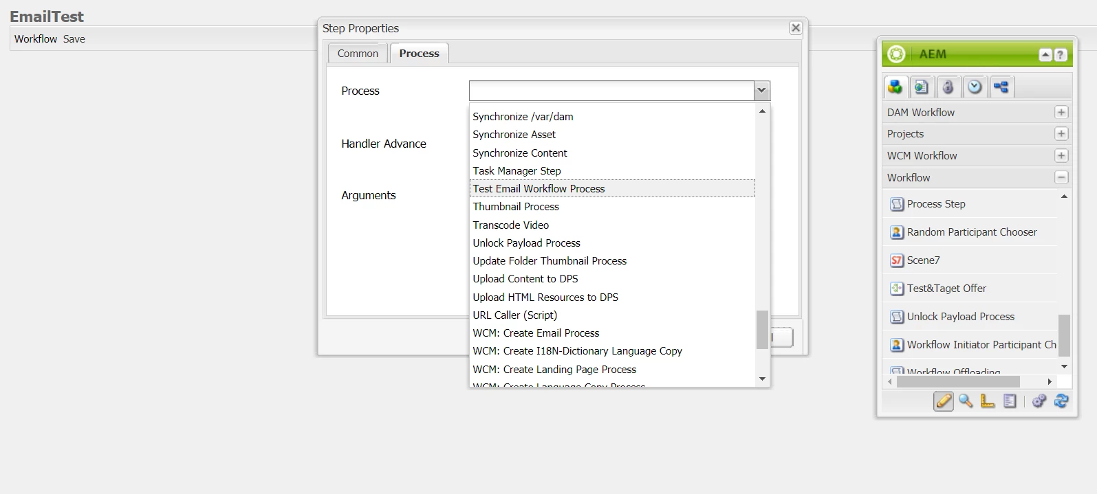 Custom workflow does not appears in process list. AEM 6.2