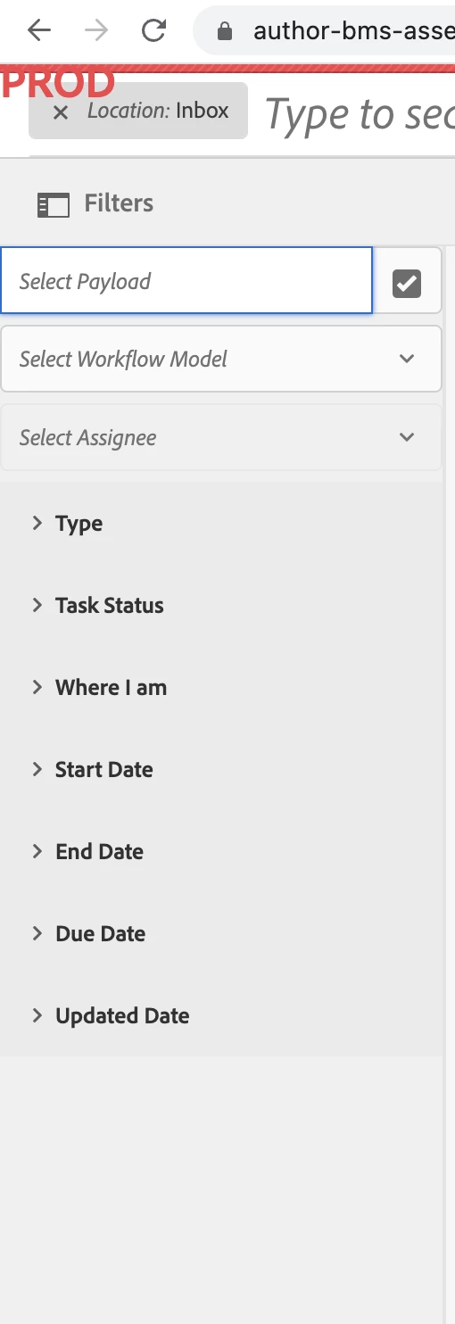 We're using AEM 6.5.12 and trying to customise the filters in Inbox.