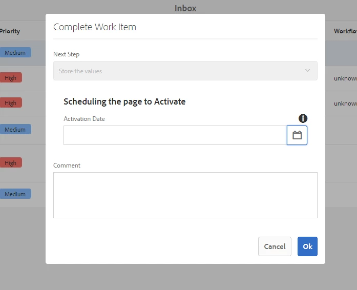 So when i start the workflow in inbox, in the complete step when i click on the button the date time picker is not showing up. Please find below how it appears in inbox