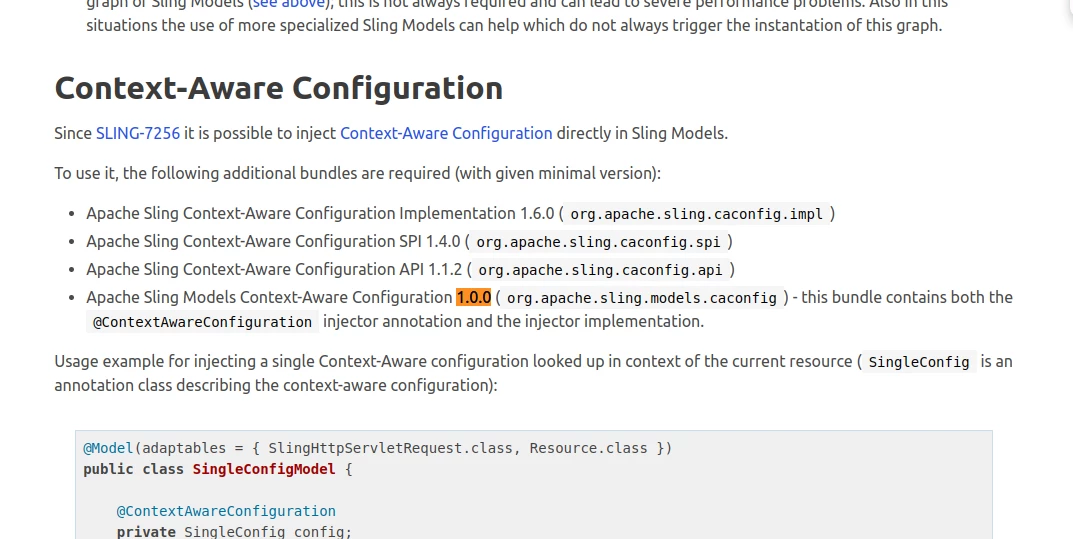 Dependencies needed to inject Content Aware Configuration annotation @ContextAwareConfiguration