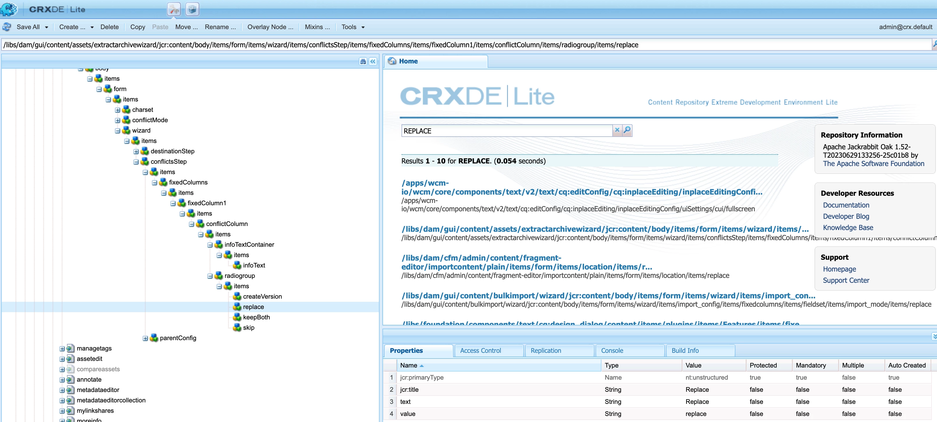 I just checked in my local enviroment. It is there. Please try to search within CRXDE for "REPLACE". But - i say it again - this is my uneducated first guess.