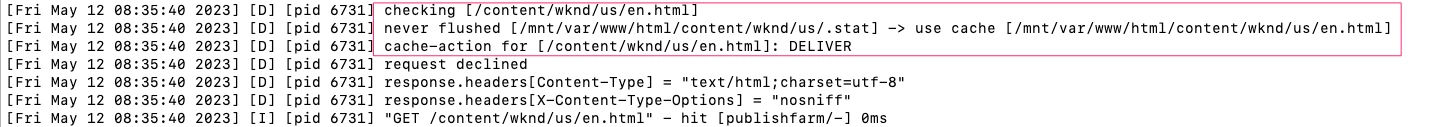 - Increased the statfilelevel to 3, the .stat files are still only 2, what changes is that the dispatcher will look for a .stat file in a deeper level to validate against the previous invalidation process e.g: [/mnt/var/www/html/content/wknd/us/.stat]