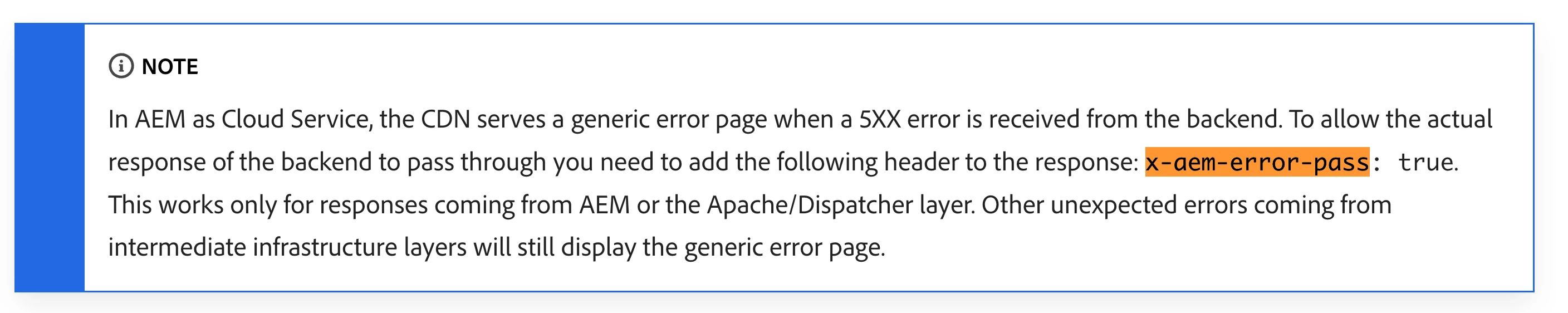 I have a custom AEM endpoint returning some json content. In some cases when there is some content related issue, I would like to return a 500 with a custom json body. It is working good on my local but when running the same on cloud it is displaying an AEM error page with the text "Unexpected Error: Looks like we are having some issues with our service. We are working hard to bring it online again.".