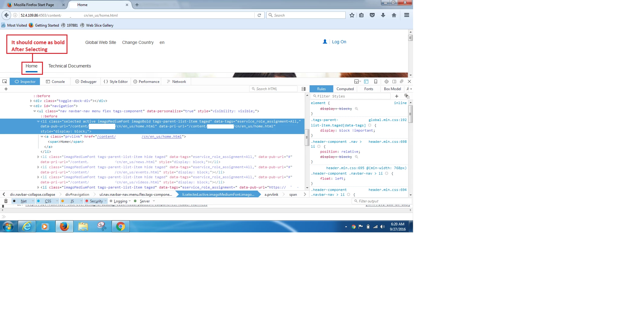 I have a webpage where my requirement is that whenever we will click on any navigation item (like home) It should displayed imagoMediumFont imagoBold.